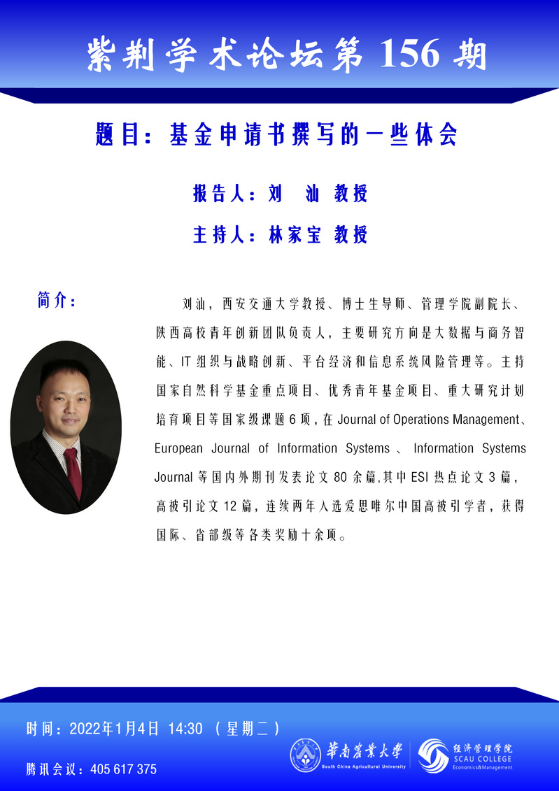 紫荆学术论坛第156期--学术报告通知