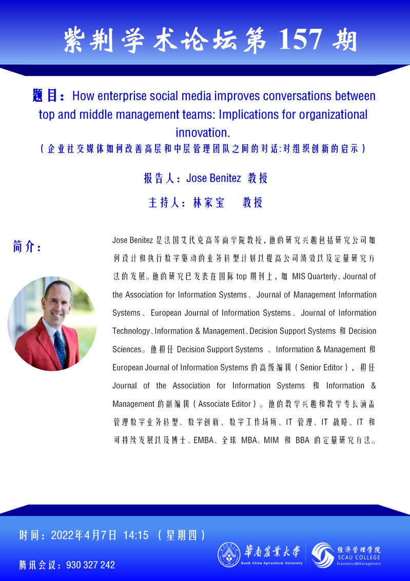 紫荆学术论坛第157期--学术报告通知(海外名师讲座)